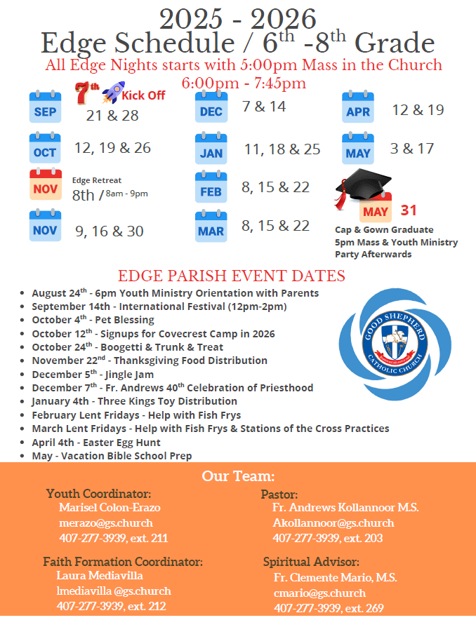 Saturday Vigil: 4:30pm & 6:15pm Spanish